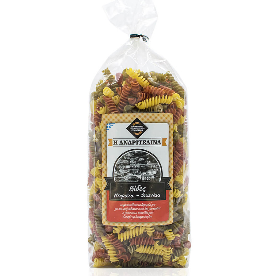 Ανδρίτσαινα – Βίδες Ντομάτα Με Σπανάκι