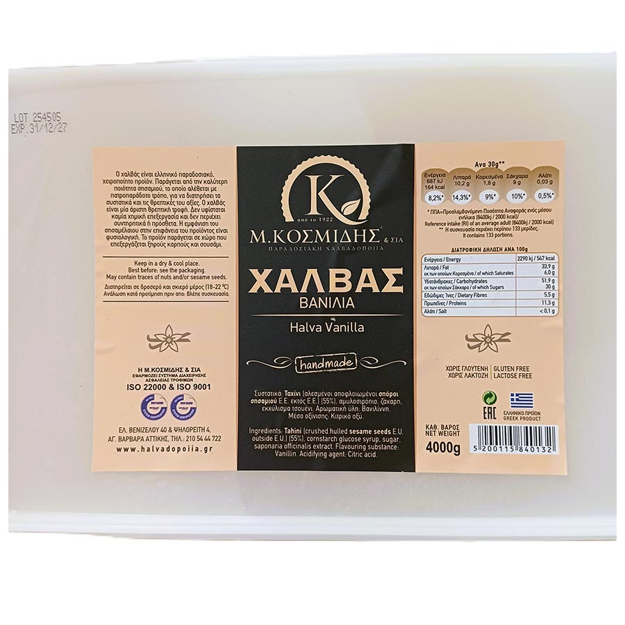 Αφράτος, αρωματικός και φτιαγμένος με την εγγύηση ποιότητας Κοσμίδης, ο κλασικός χαλβάς βανίλια είναι η πιο αγαπημένη παραδοσιακή επιλογή για κάθε στιγμή. Με πλούσια υφή, ισορροπημένη γλύκα και αυθεντική γεύση που θυμίζει παλιά καζάνια, γίνεται ιδανικός για πρωινό, για γλυκό μετά το φαγητό ή για να συνοδεύσει τον καφέ. Ένα προϊόν που δεν λείπει ποτέ από το ελληνικό σπίτι! Θρεπτικός, νηστίσιμος και απολαυστικός σε κάθε μπουκιά.